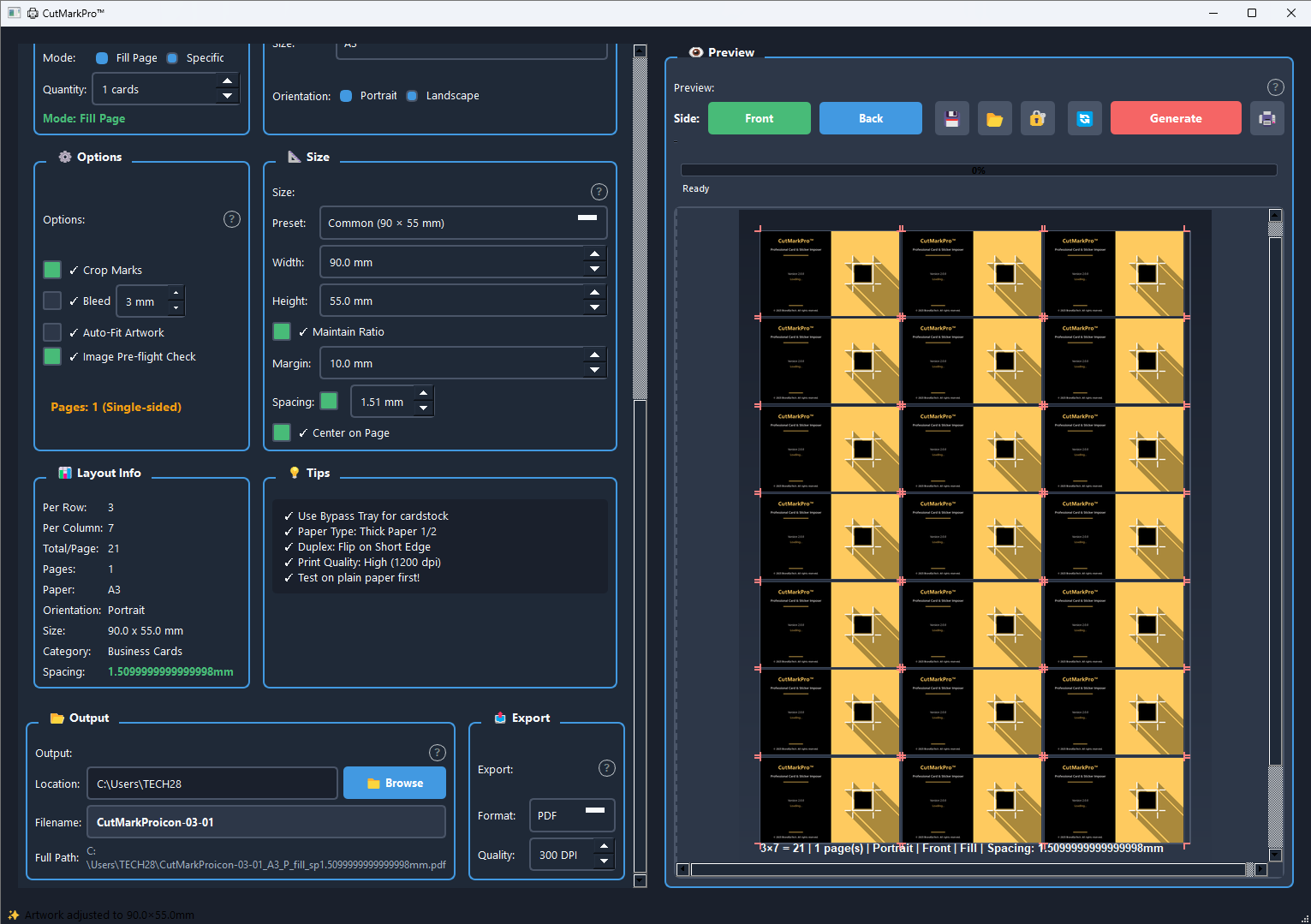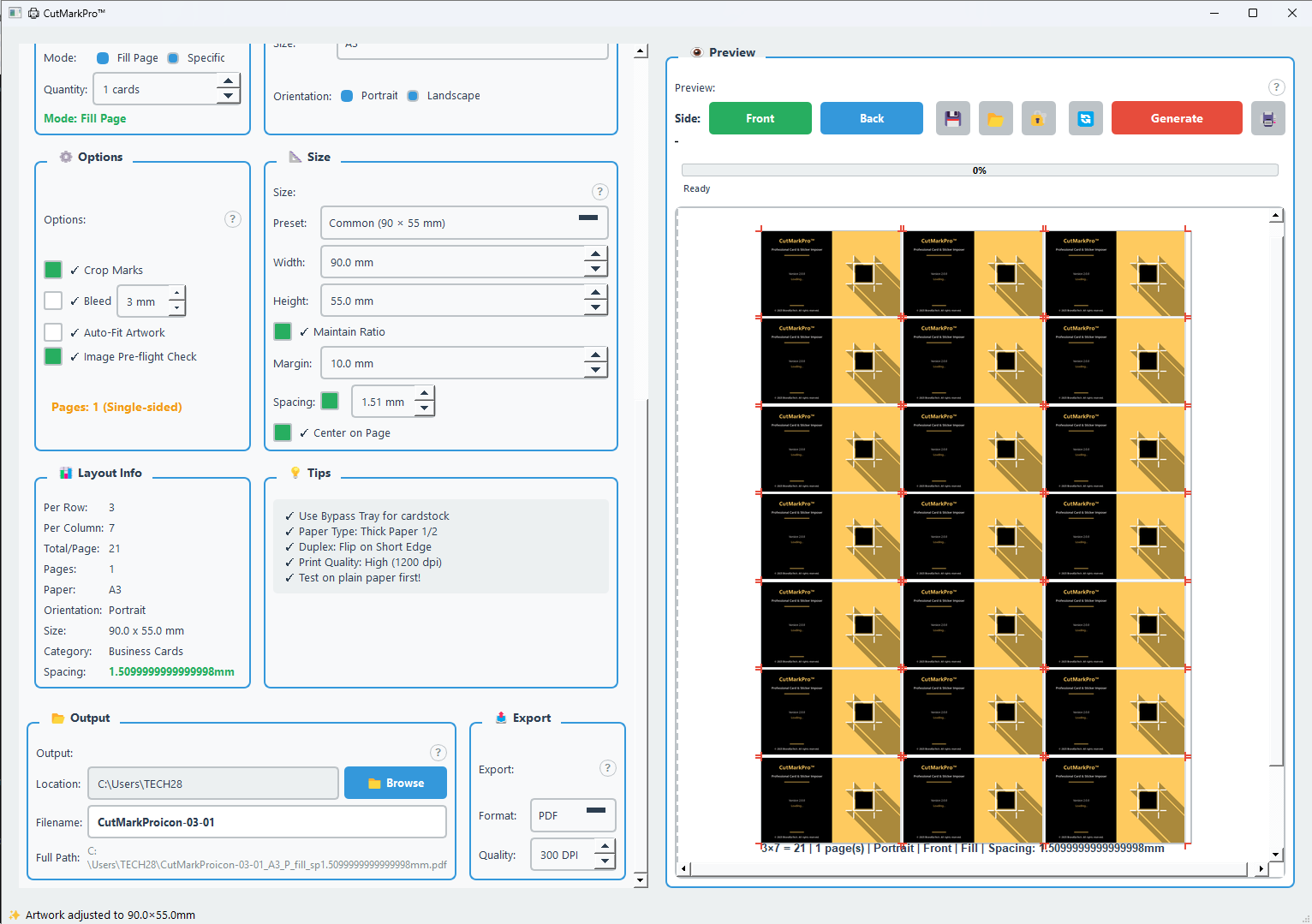 CutMarkPro™ eliminates the complexity of manual layout creation by automatically arranging your designs on standard paper sizes with proper spacing, crop marks, and bleed settings — ensuring perfect cuts every time.